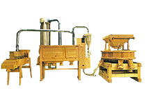Ako želite proizvesti različite vrste krupice, zamijenite sita u napravi za prosijavanje i odgovarajuće podesite mlinske kamenove. A ako želite proizvesti jednu vrstu krupice, potrebno ju je prije upotrebe naprave za čišćenje krupice očistiti od ljuski. Filtrirno korito sa filtrirnim vrećicama se upotrebljava za odsisavanje izlaznog zraka |